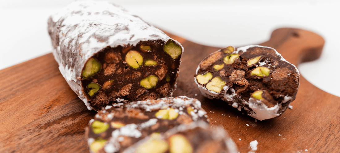 A playful roll of chocolatey goodness inspired by salami—without the meat.